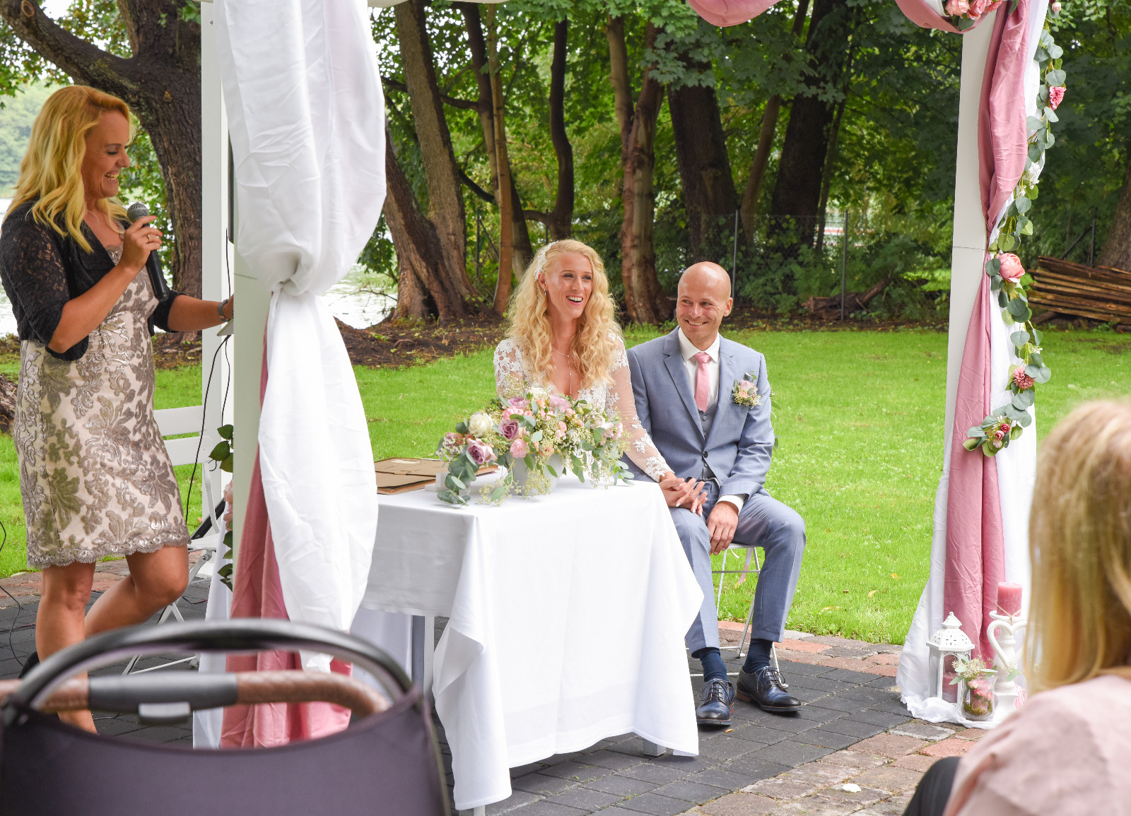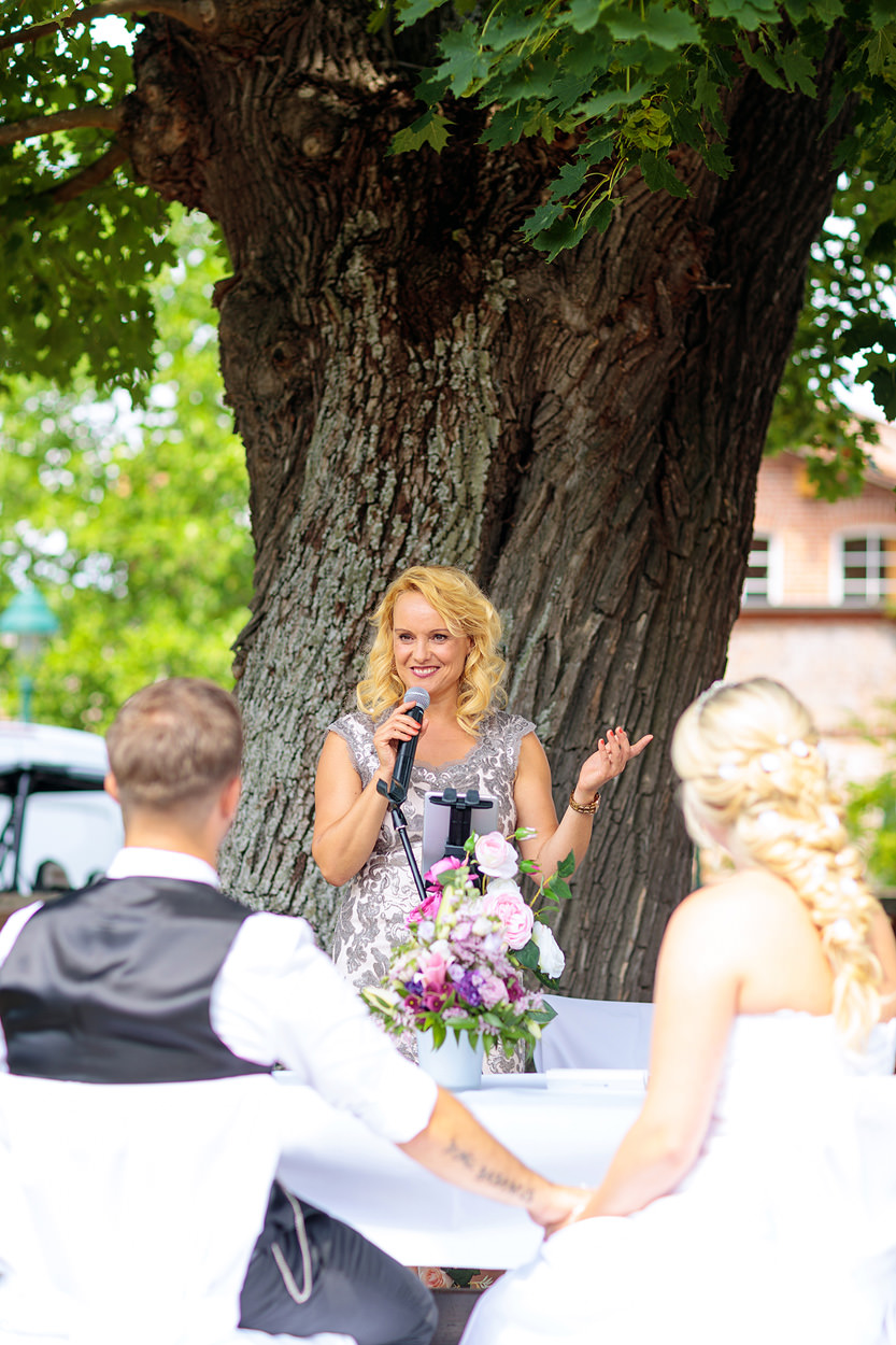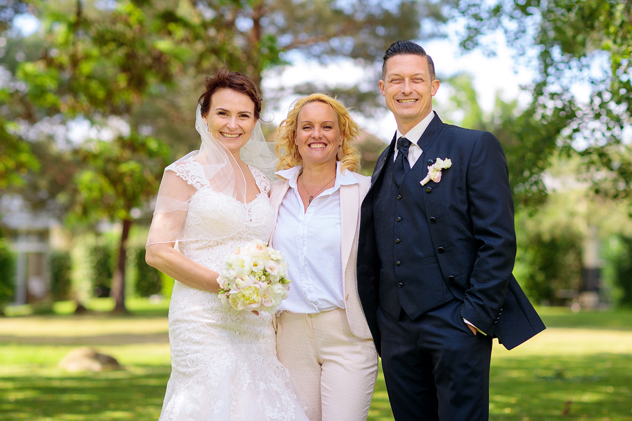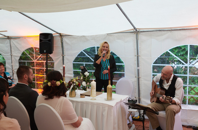 Seit mittlerweile 6 Jahren arbeite ich als Freie Traurednerin sowie Hochzeitssängerin von Berlin aus. Zuvor habe ich an der Universität der Künste in Berlin Pop-/Jazz-Gesang sowie auch Klavier studiert. Während dieser Zeit entdeckte ich meine Leidenschaft für das Komponieren und Schreiben von Texten. Worüber erzählen meine Texte? Natürlich auch sehr viel über die Liebe, die manchmal merkwürdige Wege geht, um dann endlich da anzukommen, wo sie wirklich hingehört. Ankommen bei sich und im Herzen des anderen und plötzlich, macht das Leben richtig Sinn. Und so ist Schreiben über dieses unglaubliche Glück zweier Menschen, wie sie sich auf unserer grossen weiten Welt gefunden haben, zu meiner absoluten Leidenschaft geworden. Dieser Moment, wenn Ihr beide Euch das „ JA-Wort“ für immer gebt, begleitet und umrahmt von meiner Rede und meinem Gesang, das ist immer wieder einzigartig. Ein Feuerwerk aus Emotionen, wird durch meine persönlichen Worte, mit viel Empathie, Romantik, Humor und auch Feinsinn, entfacht. Noch schöner und authentischer wird Eure Trauung allen in Erinnerung bleiben, wenn Saitenvirtuose Helge Marx meinen Gesang und eure Lieblingslieder dazu live auf der Gitarre begleitet.